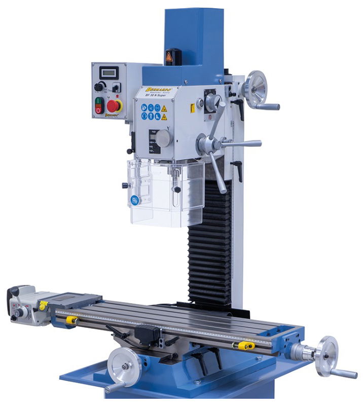 A jól bevált KF 25 Vario továbbfejlesztése sorozatszerűen nagyobb orsófelvételt, nagyobb maróasztalt, valamint 2 digitális mutatót kínál fordulatszámhoz (50 - 3000 ford./perc) és fúrásmélységhez. Ennek a kompakt fúró- és marógépnek a további érdekes ismertetőjelei az elektronikus, fokozatmentesen szabályozható fordulatszám, valamint az -90°-tól +90°-ig elfordítható marófej.